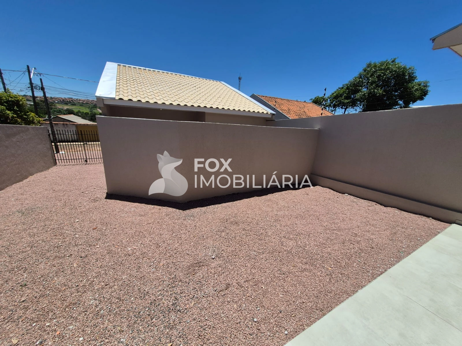 2 quartos, sala de estar, cozinha, banheiro social, área de serviço coberta, terreno amplo nos fundos e garagem para 2 carros.